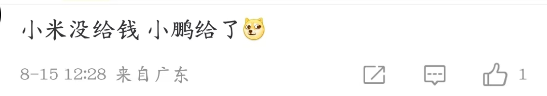 还有的网友斗胆猜想,“小米没给钱,小鹏给了。”