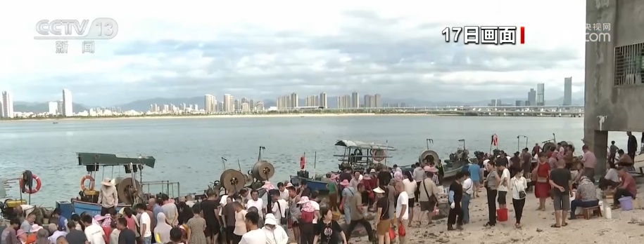 这是8月17日清晨,广东湛江江洪渔港闻名的“天光鱼市”。天未亮,渔民归来,卸货叫卖;天刚亮,海产品就已被一抢而空,“天光鱼市”由此得名。能够看到,这两天渔市里是人来人往、买卖火爆,堪比过年时分的大集。
